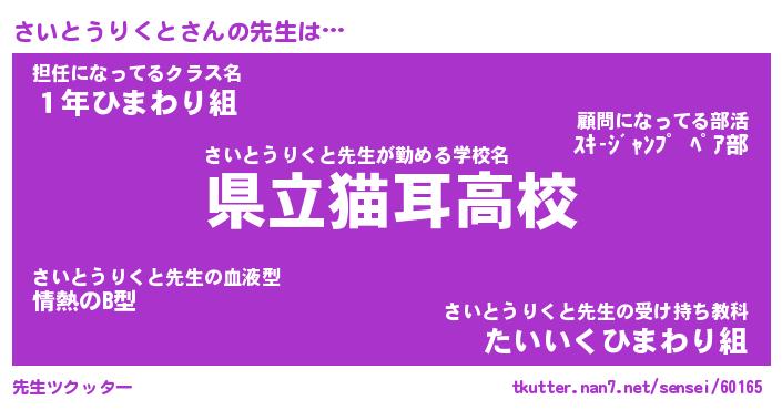 | ヘコむあだ名 | 『さいにー』『つくし』『さい太郎』 |
