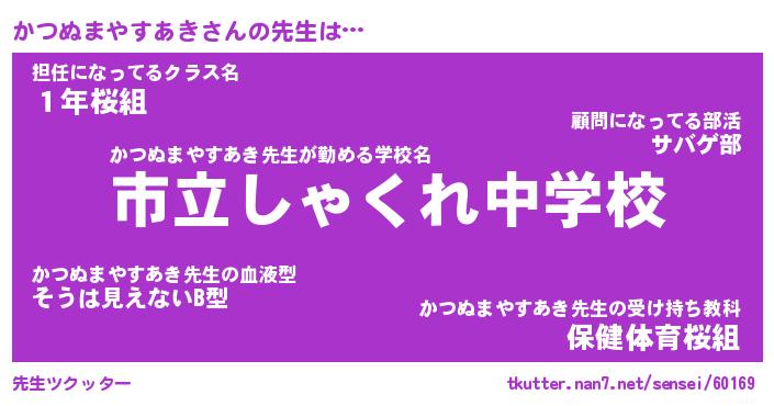 | 伝説のあだ名 | 『伝説のスナイパーかつぬまやすあき』 |
