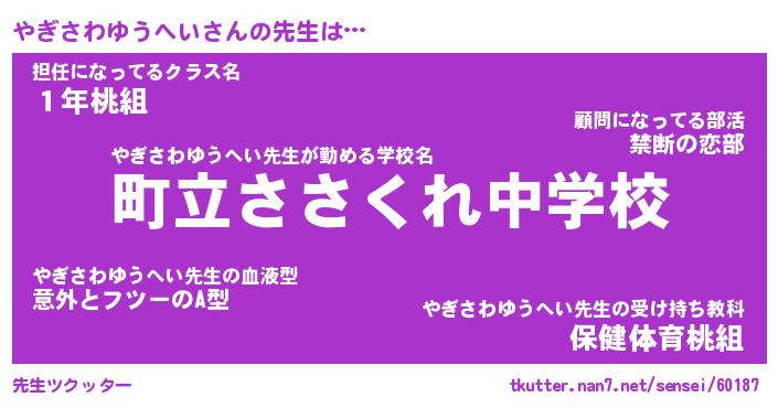 | 伝説のあだ名 | 『封印されしスナイパーやぎさわゆうへい』 |