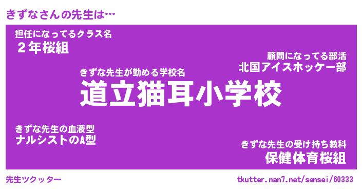 | ヘコむあだ名 | 『きずにー』『なまこ酢』『きずっぺ』 |