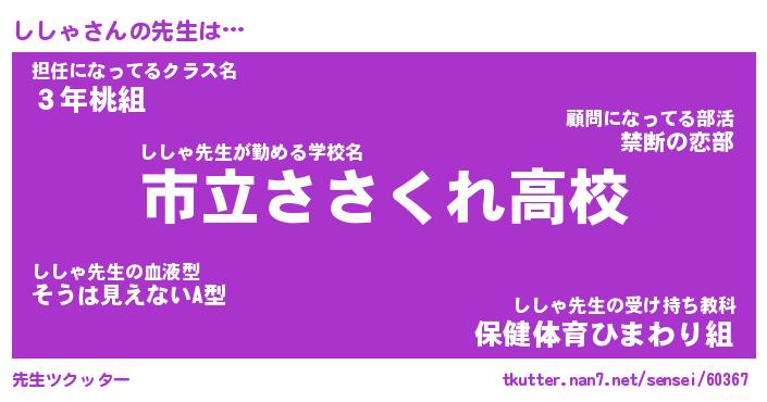 | 意味不明あだ名 | 『ペロリンししゃ』『ししゃフォーエバー』 |