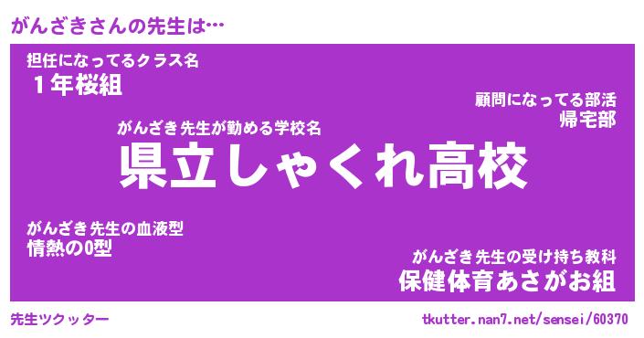 | ポケモン風あだ名 | 『ガンチュウ』『ガンザダネ』 |