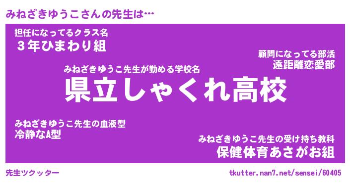 | 肩書あだ名 | 『みねざきゆうこ御曹司』 |