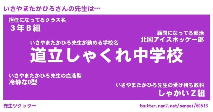 | 肩書あだ名 | 『いさやまたかひろ御曹司』 |