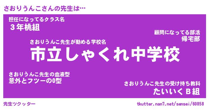 | 伝説のあだ名 | 『伝説のスナイパーさおりうんこ』 |