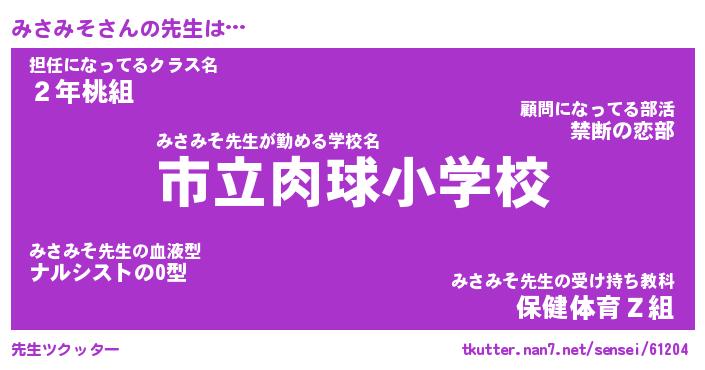 | 欧米人風あだ名 | 『マイケルみさみそ』『ウサインみさみそ』 |