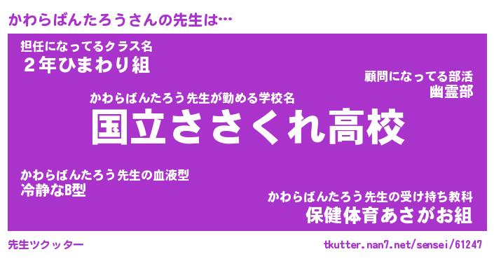 | 胡散臭い通販商品みたいなあだ名 | 『必ず成功する水晶球…その名も「かわらばんたろう」』 |