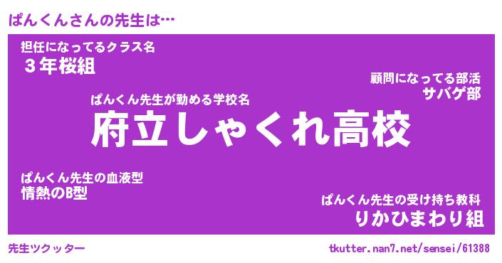 | 意味不明あだ名 | 『ペロリンぱんくん』『永久保存ぱんくん』 |