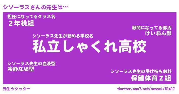 | ファンタジー風あだ名 | 『シソフェル』『エターナルシソーラスー』 |