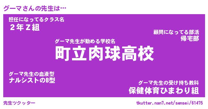 | ポケモン風あだ名 | 『グーチュウ』『グーマダネ』 |