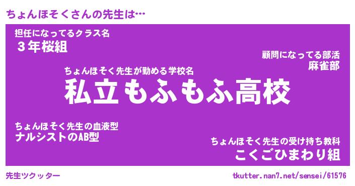 | 男性向けラノベタイトル風あだ名 | 『ちょんほそくの憂鬱』 |