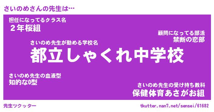 | 意味不明あだ名 | 『ペロリンさいのめ』『永久保存さいのめ』 |
