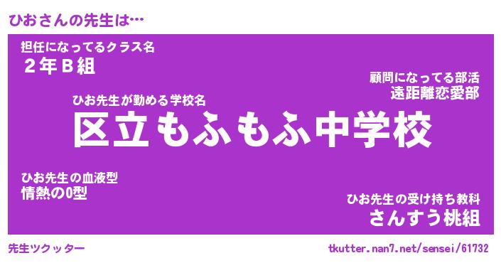 | ヘコむあだ名 | 『ひおにゅー』『なまこ酢』『ひおお』 |