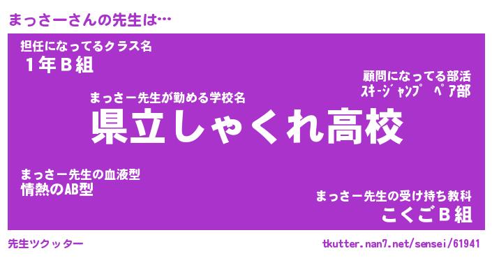 | 意味不明あだ名 | 『ペロリンまっさー』『永久保存まっさー』 |
