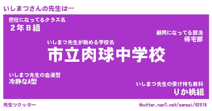 | 意味不明あだ名 | 『ペロリンいしまつ』『永久保存いしまつ』 |