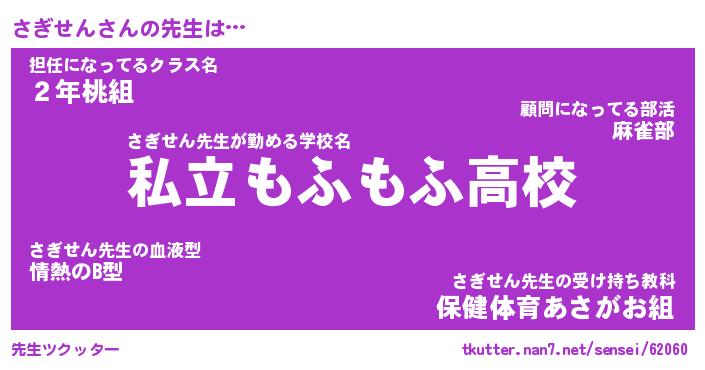 | ヘコむあだ名 | 『さぎにゅー』『なまこ酢』『さぎを』 |