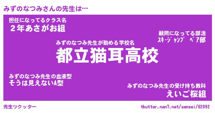 | 男性向けラノベタイトル風あだ名 | 『みずのなつみの憂鬱』 |