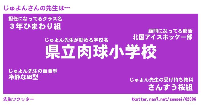 | 男性向けラノベタイトル風あだ名 | 『じゅよんの憂鬱』 |