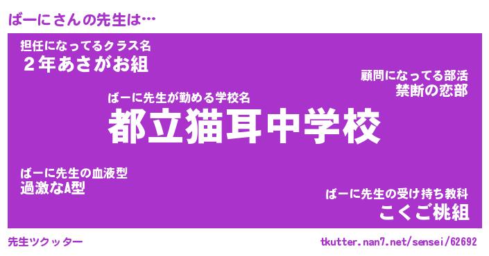 | ヘコむあだ名 | 『ばーにー』『豆乳』『ばーぷりん』 |
