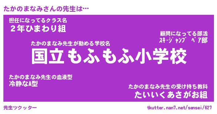 | ヒーロー風カッコイイあだ名 | 『スーパータカノマナミ』『銀牙騎士タカ』 |
