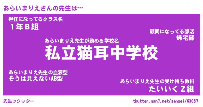 | 欧米人風あだ名 | 『マイケルあらいまりえ』 |