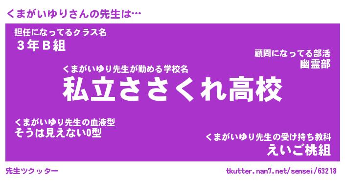 | 伝説のあだ名 | 『伝説のスナイパーくまがいゆり』 |
