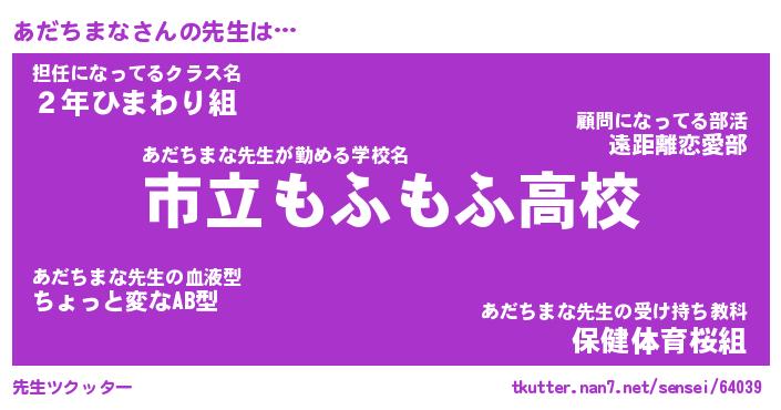 | ポケモン風あだ名 | 『アダチュウ』『アダチダネ』 |