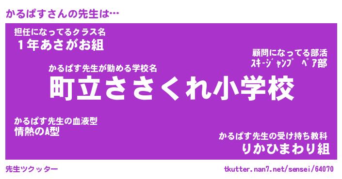 | 意味不明あだ名 | 『ペロリンかるぱす』『永久保存かるぱす』 |