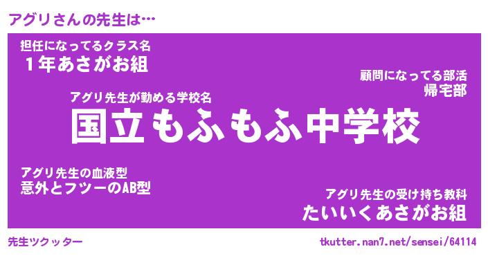 | 意味不明あだ名 | 『ペロリンアグリ』『アグリフォーエバー』 |