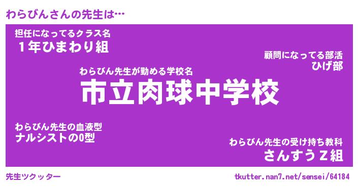 | 意味不明あだ名 | 『ペロリンわらびん』『永久保存わらびん』 |