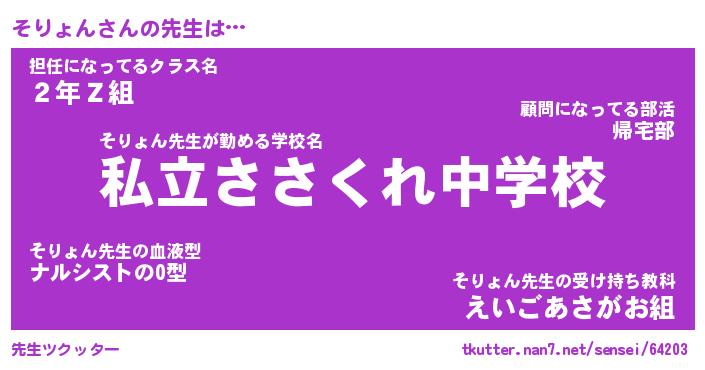 | 意味不明あだ名 | 『ペロリンそりょん』『永久保存そりょん』 |
