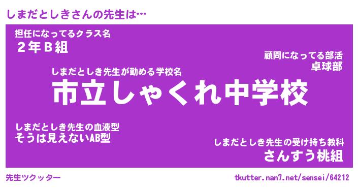 | ヒーロー風カッコイイあだ名 | 『スーパーシマダトシキ』『天弓騎士シマ』 |