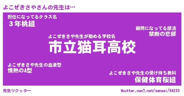 | 肩書あだ名 | 『よこぜきさや社長』『よこぜきさや担任』 |