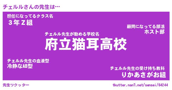 | ファンタジー風あだ名 | 『チェフェル』『エターナルチェルルー』 |