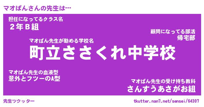 | 意味不明あだ名 | 『ペロリンマオぱん』『永久保存マオぱん』 |