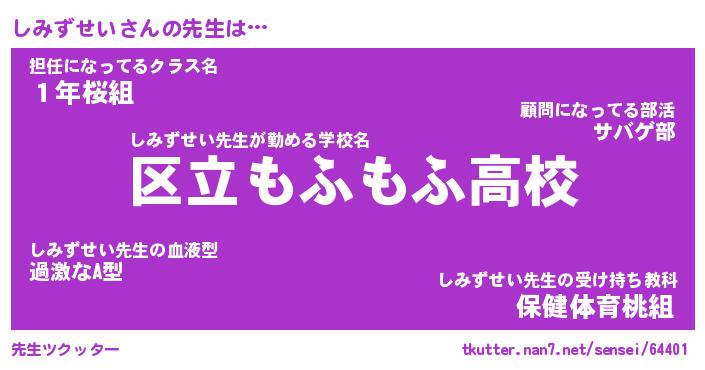 | ファンタジー風あだ名 | 『シミフェル』『エターナルシミズセイー』 |
