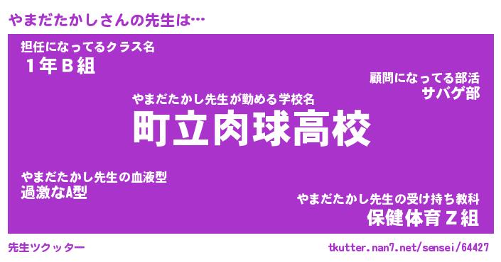 | ヒーロー風カッコイイあだ名 | 『スーパーヤマダタカシ』『銀牙騎士ヤマ』 |