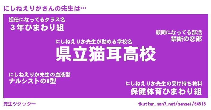 | ヒーロー風カッコイイあだ名 | 『スーパーニシネエリカ』『炎刃騎士ニシ』 |