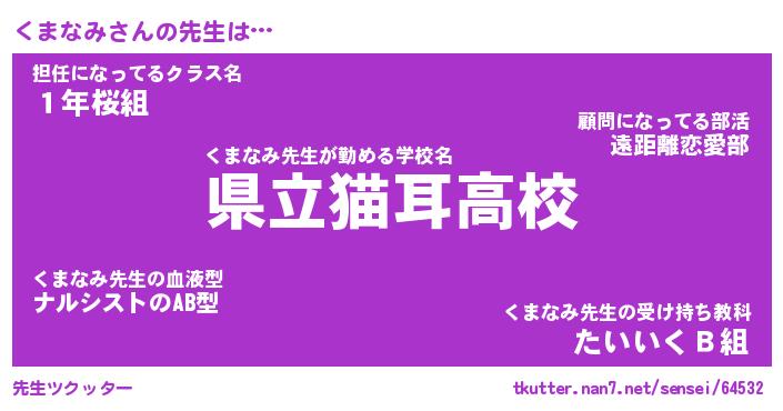 | ファンタジー風あだ名 | 『クマフェル』『エターナルクマナミー』 |