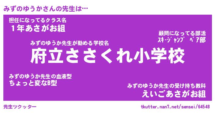 | ヒーロー風カッコイイあだ名 | 『スーパーミズノユウカ』『魔戒騎士ミズ』 |