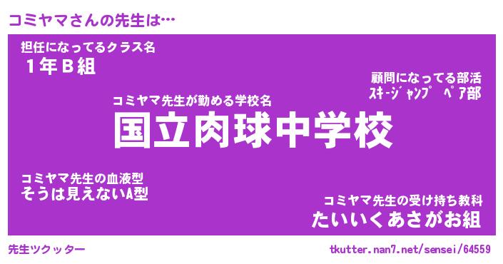 | ヘコむあだ名 | 『コミふぇ~』『豆乳』『コミ太郎』 |