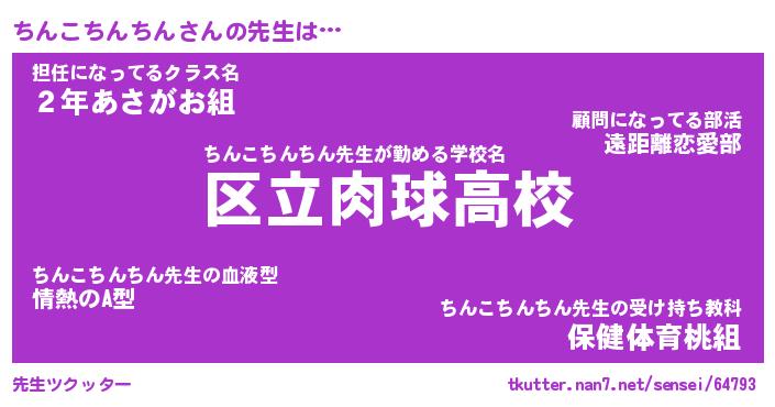| ポケモン風あだ名 | 『チンチュウ』『チンコダネ』 |