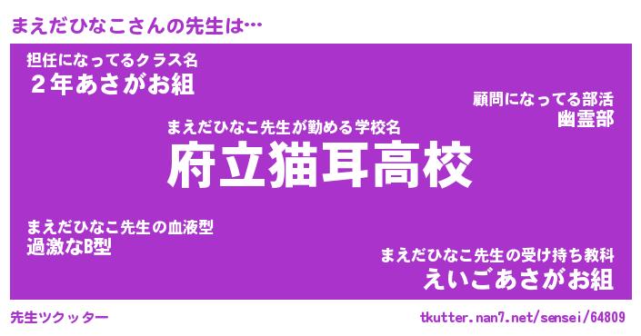 | ヘコむあだ名 | 『まえにー』『豆乳』『まえっ子』 |