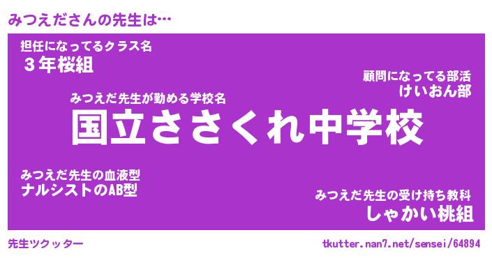 | 意味不明あだ名 | 『ペロリンみつえだ』『永久保存みつえだ』 |