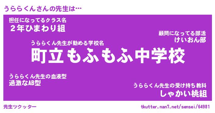 | ファンタジー風あだ名 | 『ウラフェル』『エターナルウララクンー』 |