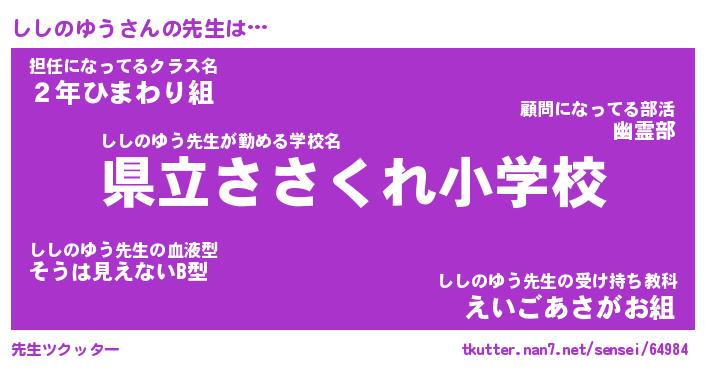 | ファンタジー風あだ名 | 『シシフェル』『エターナルシシノユウー』 |