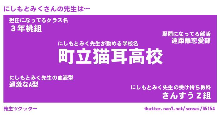 | ヒーロー風カッコイイあだ名 | 『スーパーニシモトミク』『天弓騎士ニシ』 |