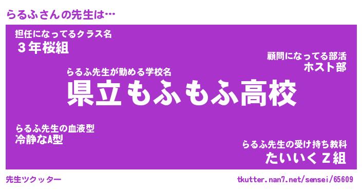 | ヘコむあだ名 | 『らるにゅー』『酢こんぶ』『らるを』 |