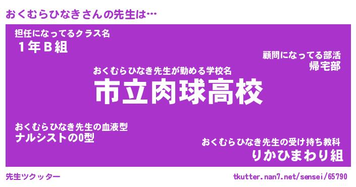 | 男性向けラノベタイトル風あだ名 | 『おくむらひなきの憂鬱』 |