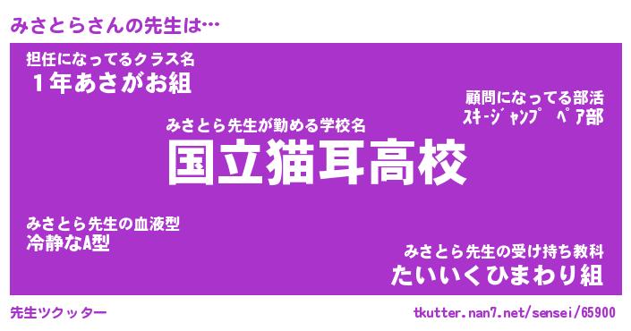 | ヒーロー風カッコイイあだ名 | 『スーパーミサトラ』『銀牙騎士ミサ』 |